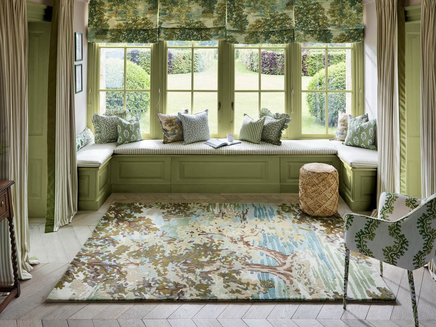Orgullosamente fabricada en India, la alfombra Sanderson Ancient Canopy es una pieza que combina la tradición artesanal con un diseño contemporáneo y atemporal.