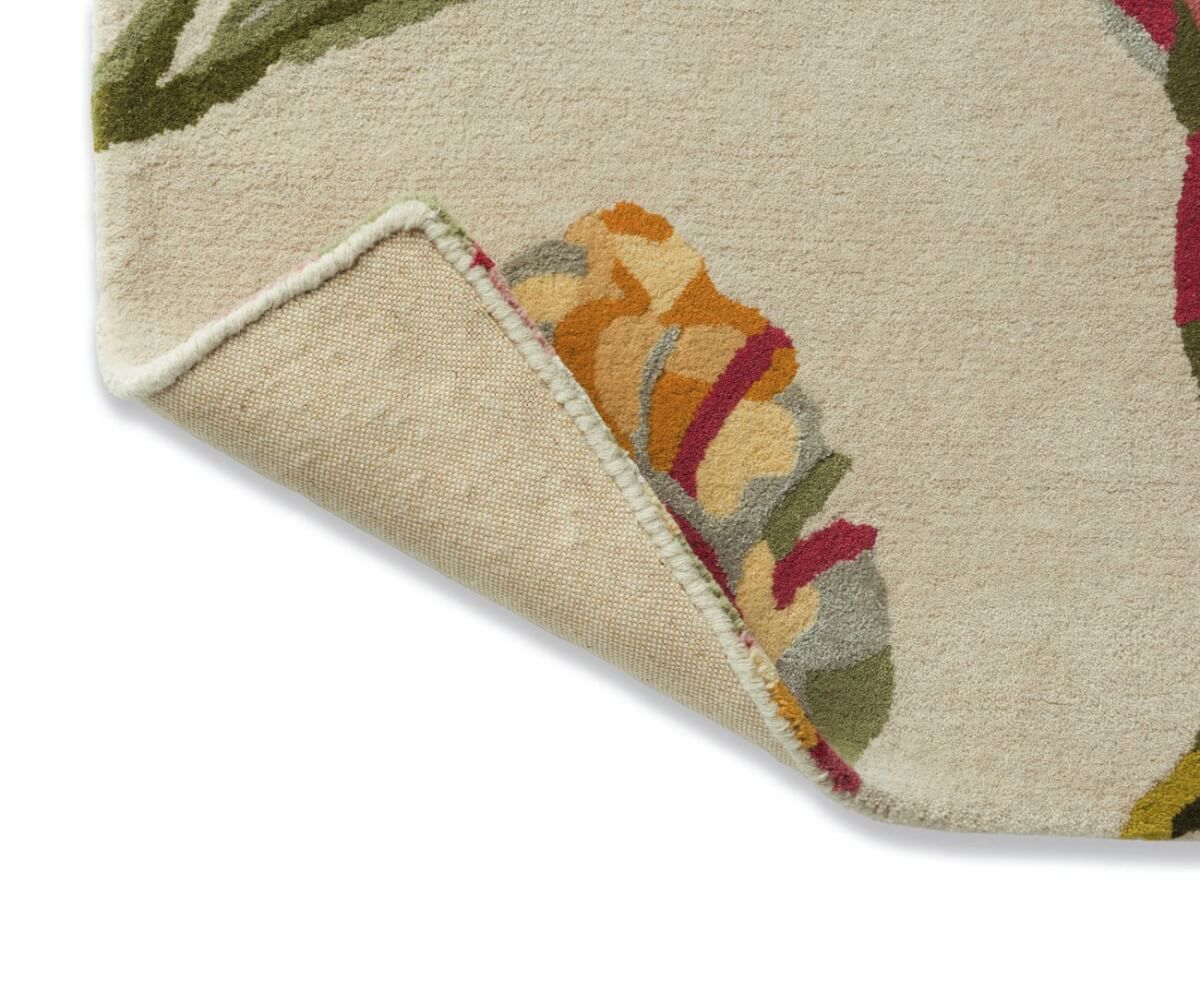 Elaborada de forma artesanal mediante la técnica hand-tufted, esta alfombra está confeccionada con materiales de alta calidad: una mezcla de lana pura y viscosa en la superficie, que le otorgan una textura suave y un brillo elegante, mientras que su reverso en algodón y látex asegura durabilidad y estabilidad.