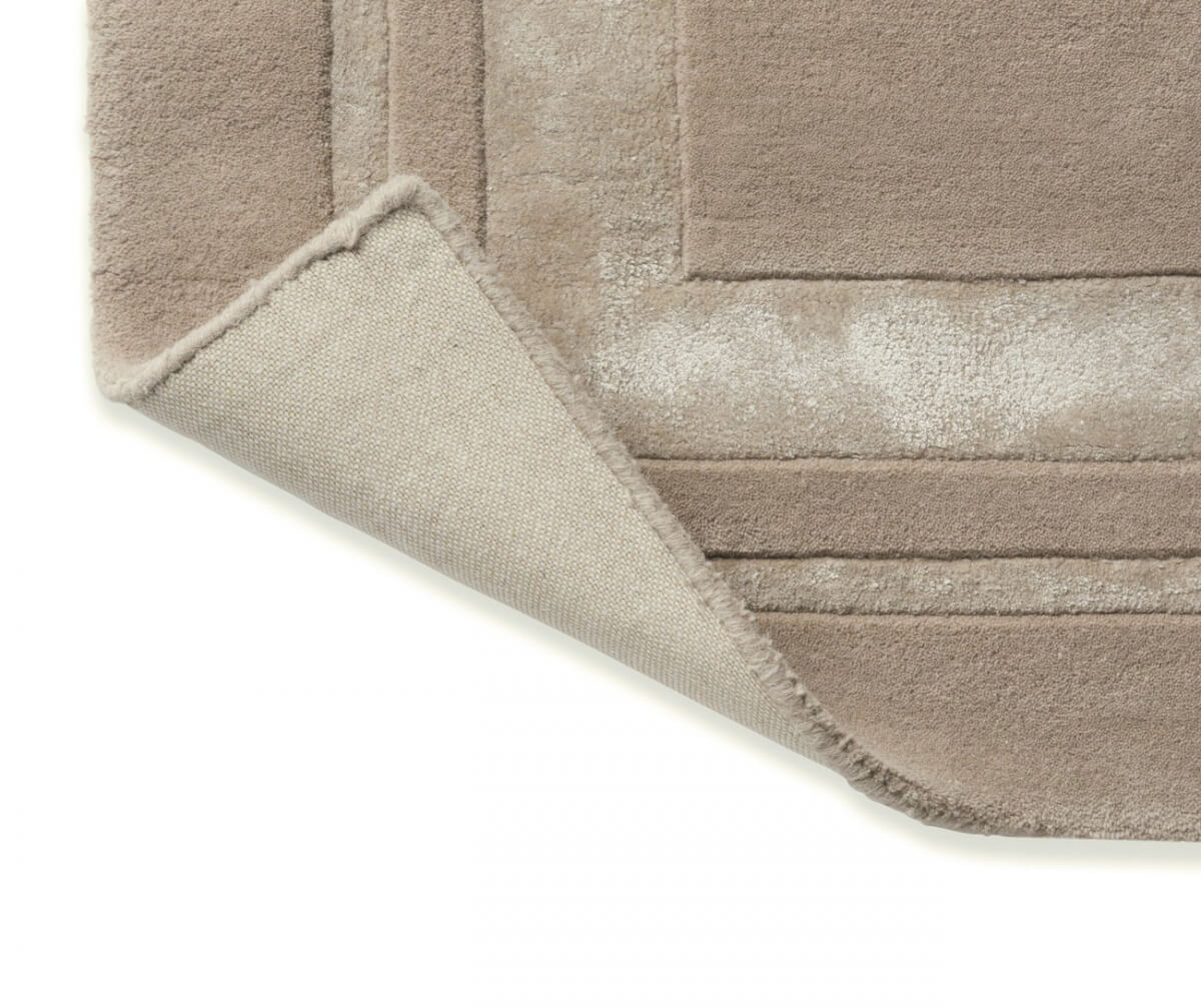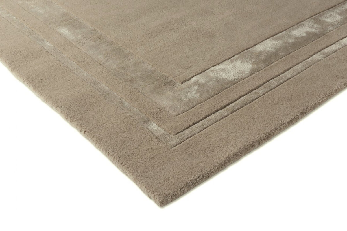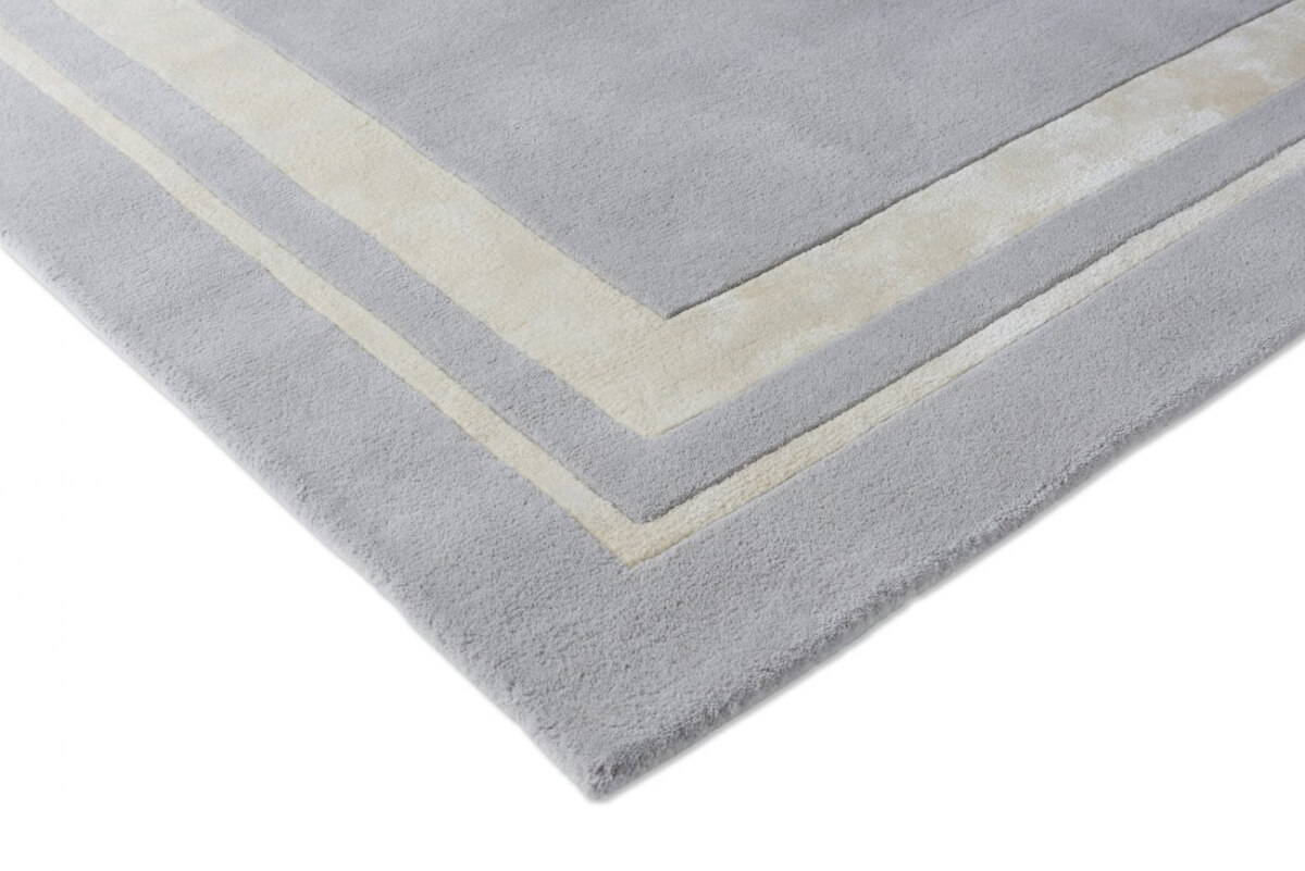 El diseño se caracteriza por un marco tonal en viscosa que enmarca el centro de la alfombra, creando un efecto visual sutil y refinado. Perfecta para complementar interiores modernos o tradicionales, esta pieza se integra armoniosamente con una amplia variedad de estilos decorativos.