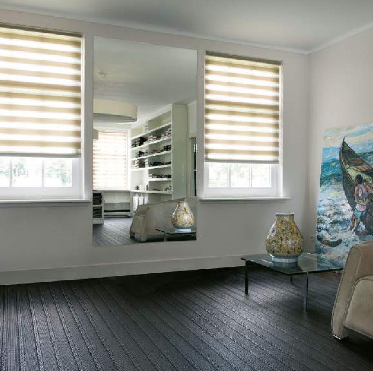 Los estores noche y día alternan tiras de tejidos translúcidos y opacos que hacen que se pueda regular la entrada de luz en la estancia.